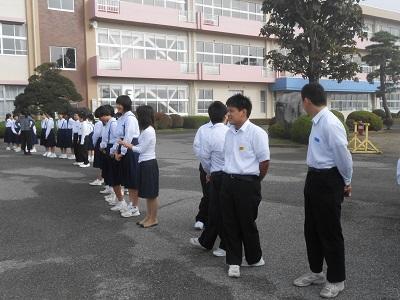 今日も昨日に引き続き、朝のあいさつ運動が行われました。今日は「テニス部女子」と「サッカー部」です。