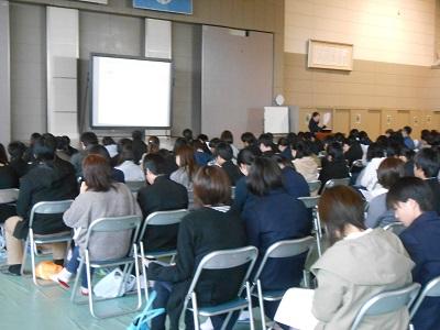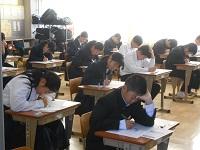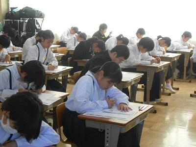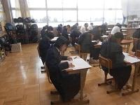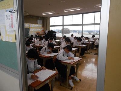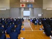 3年生は5・6校時に体育館で「県立高校説明会」を行いました。保護者の方にも御来校いただき、特色選抜選考・一般選考等の詳しい内容について説明いたしました。今年度から私立高校への出願がインターネット出願に変わり、保護者や生徒が自ら行う作業が増えています。3年生も残り3か月半となりました。目標を定め今後さらに飛躍することを祈っています。