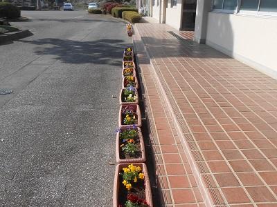校内外を歩くと玄関前に「環境緑化委員会」が植えたパンジーがきれいに並んでいました。来校者の方も喜んでくれますように・・・・・