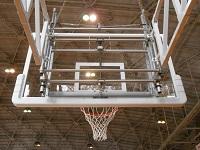 体育館では、新しい「バスケットボード」の取り付け作業を行っていました。