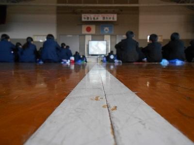 【避難訓練】 6校時目に高根沢消防署員(5名)に御指導いただき、地震による避難訓練を行いました。強い揺れを感じた後は机の下に避難し、落ち着いてから校庭へ避難しました。今日は偶然、8:33分に関東地方に強い揺れ(震度4)を感じた地震が発生いたしました。そのときのことを確認したら2年生の半数が机の下に避難しましたが、それ以外の生徒は様子を伺っていただけでした。「自分は大丈夫」、という過信はいけません。揺れを感じたら避難する習慣を付けましょう。