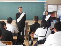 【選挙活動】※1年生が2年生の前で緊張しながら、自分の方針を述べていました。内容はとても素晴らしいものでした。