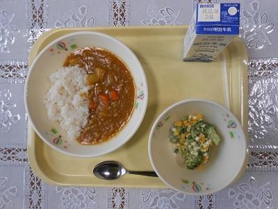 【給食メニュー】 ポークカレーとブロッコリーとチーズのサラダです。阿久津小のリクエストメニューです。