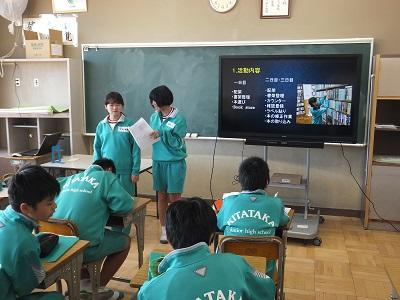 寒い日が続き、体調を崩して欠席する生徒が増えてきました。今年もあと7日登校すると冬休みになります。元気に登校できることを期待します。