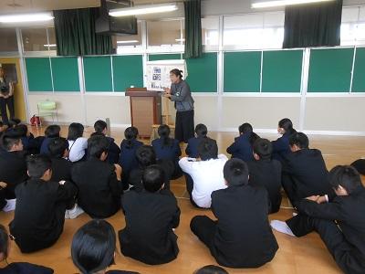 【冬休み前集会】 6時間目に体育館で「冬休み前集会」を行いました。各種賞状の伝達や清掃コンクールの表彰式、その後、校長と生徒指導主事から冬休みにおけるお願いをしました。校長からは「家族の一員」として頼りになる行動を行い、親や祖父母等に喜んでもらえることをしてほしいとお願いしました。生徒指導主事からは目標をしっかり持って生活してほしいとお願いしました。