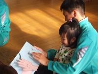2年1組は11月30日に家庭科「家族・家庭生活」で、「にじいろ保育園」に行きました。2組は外遊び中心でしたが、1組は室内中心の交流でした。
