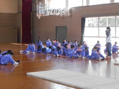 【小中連携】 5時間目に体育館で東小学校の卒業式の会場準備がありました。1年2組の生徒と5年生が協力して、一緒にシートを敷いてあげました。これがまさに小中連携です。これからもたくさん連携を図っていきたいです。