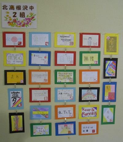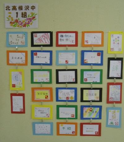 1年生の教室には、多くの掲示物が張られ、生徒の活動の足跡が確認できます。