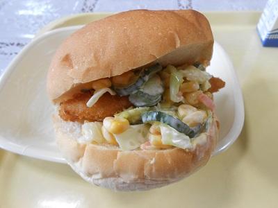 こんな感じで、「フィッシュバーガー」にして食べました。