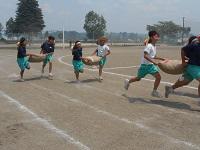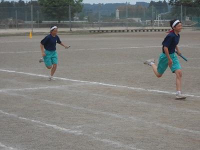 さて、何の種目でしょうか? 今年度新たに「部活動リレー」を行う予定です。当日はユニホームを着用して行います。期待してください。