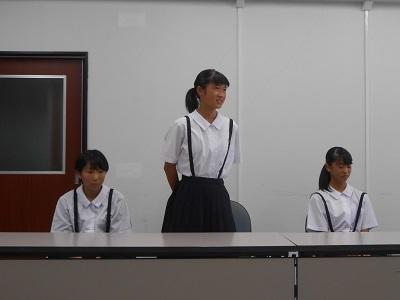 【関東大会出場、町長表敬訪問】  8/1、県総体を勝ち抜いた水泳部・ソフトボール部の関東大会出場を町長・教育長に報告いたしました。お二人から激励の言葉をいただいた後、選手一人一人から大会への抱負を述べてきました。8月7日から競技が開始されます。県代表として頑張ってください。