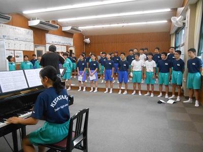 【授業参観】 1年2組「音楽」、合唱コンクールの練習です。パートごとにリーダーを決め、熱心に練習していました。