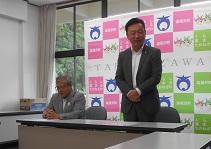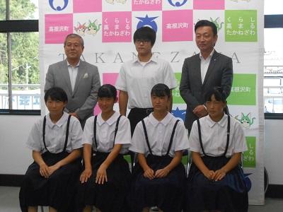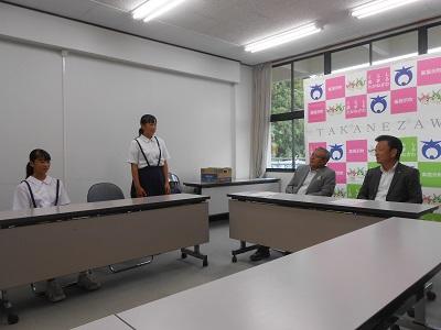 【関東大会出場、町長表敬訪問】 8/1、県総体を勝ち抜いた水泳部・ソフトボール部の関東大会出場を町長・教育長に報告いたしました。お二人から激励の言葉をいただいた後、選手一人一人から大会への抱負を述べてきました。8月7日から競技が開始されます。県代表として頑張ってください。