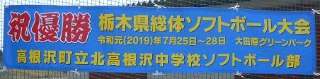 県総体優勝を祝福し、体育・文化後援会より横断幕を作成しました。現在、ソフトボール場のネットに掲示しています。