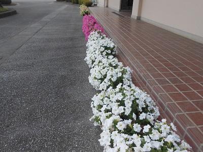 校内を散策すると校舎前の花が夏の暑さに負けず、花を咲かせています。また、自転車小屋は塗装が終了しきれいに整備されました。生徒の登校を楽しみにしているかのようです。
