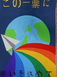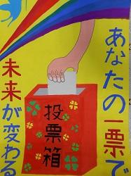 【夏休みの作品】 選挙ポースターの作品です。色彩や構成・デザインが工夫されています。