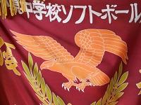 【優勝旗】 正面玄関に県ソフトボール大会の3本の優勝旗が揃いました。