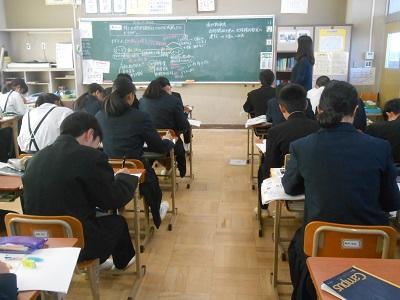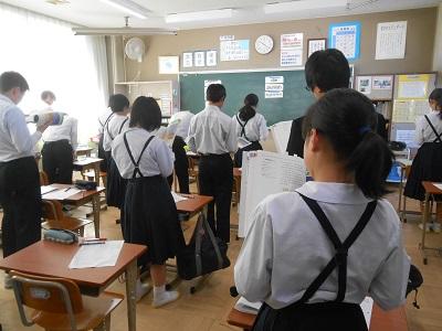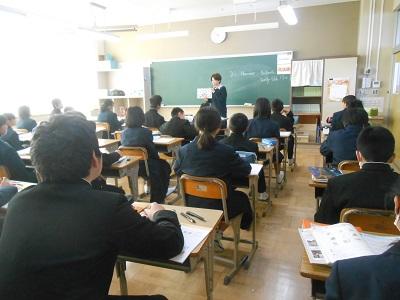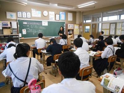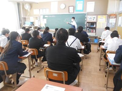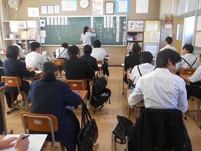 1年1組「社会」教育実習生の授業公開がありました。大学からも先生(教授)が参観してくれました。生徒も実習生も緊張の様子でした。