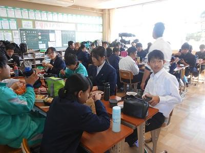 【お弁当】いつもの給食とは違い、一人一人が違ったメニューで、美味しそうに嬉しそうにお弁当を食べていました。生徒の中には全部自分で作った人や詰めることだけやった人など様々でしたが、とても素晴らしいのは、だれ一人忘れなかったことです。これもひとえに保護者の皆様の御協力のおかげです。改めて感謝申し上げます。