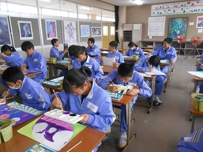 2年2組「美術」デザイン画も最終段階です。細かな作業です。