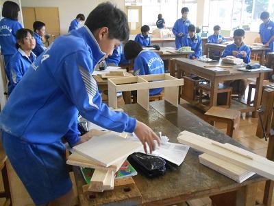 1年1組「技術」木材加工、いよいよ組み立て作業です。