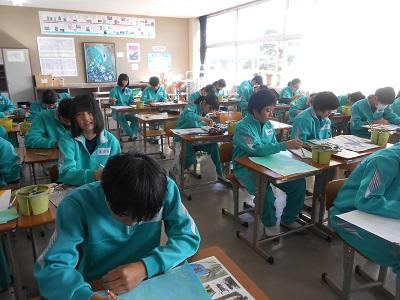 2年2組「国語」中間テストの解答用紙が返されていました。もらった瞬間ため息をつく生徒がたくさんいました。次は頑張れ!