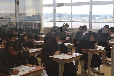 朝、外に出ると息が白くなりました。車外気温は-1℃を示し、田畑は霜が降りていました。今日から「中間テスト」が始まります。今日は3教科、明日2教科です。3年生にとってこのテストの結果は今後の進路選択に影響しますので、必至で取り組んでいます。中には下校後、図書館で勉強している姿を見かけました。体調を崩さず頑張ってください。