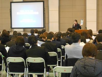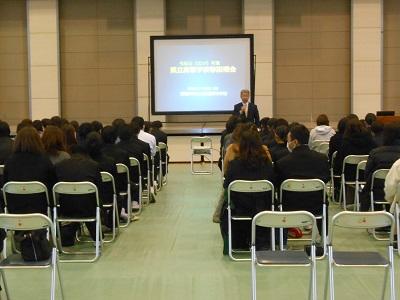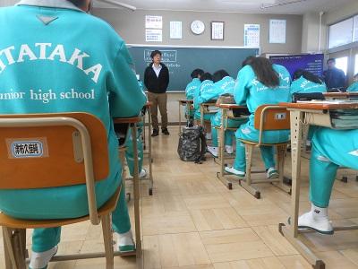 【高校説明会】雨が降る寒い中、体育館で「県立高等学校等説明会」を行いました。日程や願書等の提出日など、細かな説明をさせていただきました。今月末から私立高校のインターネット出願、更には特色選抜入試校内受付等、様々な進路事務が行われます。夢を実現させるために、今はしっかり学習することですね。