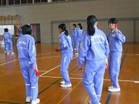 【授業参観】2年1・3組女子「保体」ダンスの授業です。今日は1時間目でウォーミングアップ用のダンス「よさこいソーラン」を学んでいました。テンポの速い音楽に合わせて、踊る姿は爽快です。