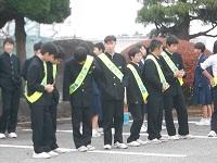 【あいさつ運動】毎週水曜日はあいさつ運動です。今日の当番は3年1組と評議委員です。寒いですが早めに登校して元気にあいさつしていました。