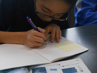 【授業参観】1年2組「理科」音の高低と振動数の関係について学んでいました。実験から仮説を立て、さらに弦の太さや長さ、弦の張りの強さなどの実験を通して、音が大きくなるのと小さくなるのでは何が違うのかを理解していました。ICT機器等の活用で生徒はすごくわかりやすい授業でした。