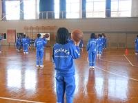 1年女子「保健体育」バスケットボールのミニゲーム(3対3)です。シュートを入れるのが難しそうでした。