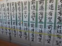 【校内散策】冬休みの課題の一つ「書き初め」です。各自がていねいな筆さばきで書かれています。廊下に掲示されていますので、三者面談の際にどうぞご覧ください。