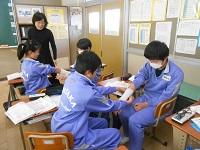 1年2組「技術」専門の技術者2名の方に教えていただいて、地図を作製しています。