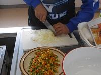 1年2組「家庭」調理実習で、ハンバーグとクリームシチューを作っていました。ボランティアの方に御協力をいただき、家ではあまりやらないようですが、みんな上手に活動していました。