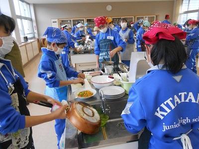 1年2組「家庭」調理実習で、ハンバーグとクリームシチューを作っていました。ボランティアの方に御協力をいただき、家ではあまりやらないようですが、みんな上手に活動していました。