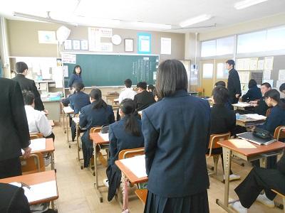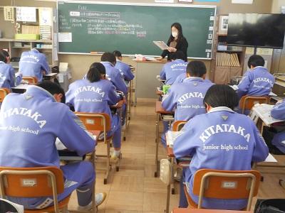 【授業参観】3年1組「英語」入試まで9日です。教室内は緊張しています。体調管理に気をつけて、頑張ってほしいです。