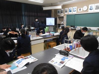 1年2組「理科」期末テストの振り返りを行っていました。解説してもらい、しっかり理解していました。