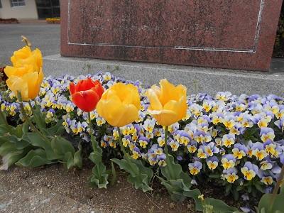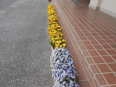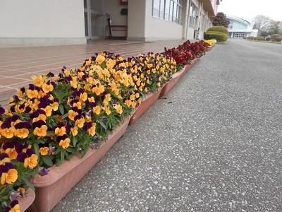 ※生徒の登校を心待ちしていたプランターの花も残念がっています。