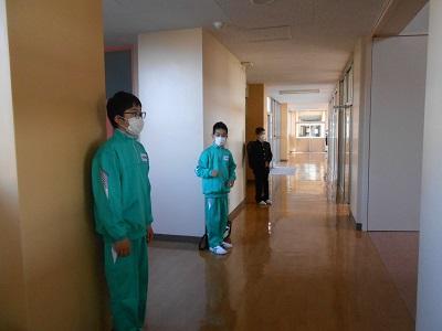※廊下で間隔を開けて待っています。