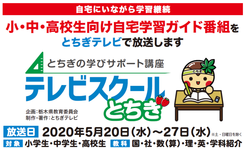 県教育委員会では5月20日~27日までとちぎテレビ局で「テレビスクールとちぎ」を放映します。ぜひご覧ください。