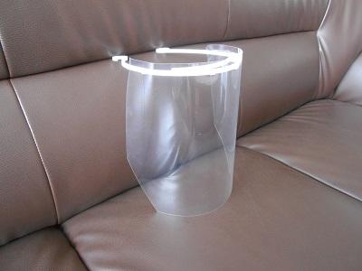 ※株式会社ケイヒン様から町内小中学校に寄贈された「フェイスガード」です。これも会社独自で考案した作品だそうです。英語の教員は喜んでいました。