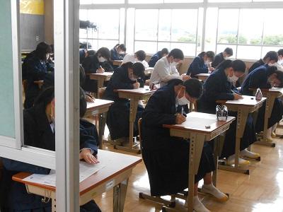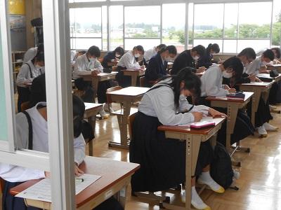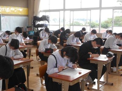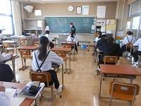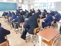 2時間目は、課題に出されていた「漢字テスト」「計算テスト」を実施しました。本校で学力向上を目的とした取組「BT」ベーシックタイムです。課題をよくやっていた生徒は好成績でした。