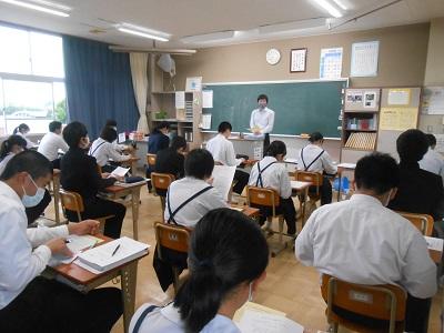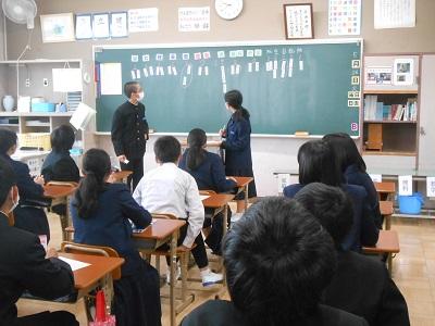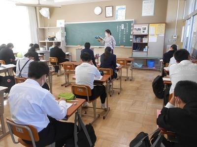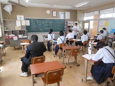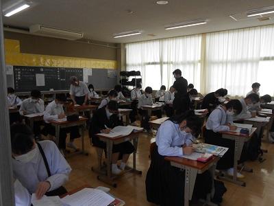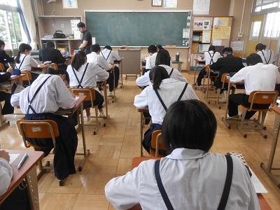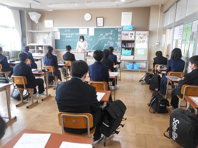 ※授業前の1年2組の教室です。緊張しているのでしょうか、誰一人として話さず、じっと席について待っていました。素晴らしいですね。