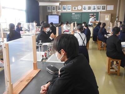 3年2組「理科」電流について学んでいました。ソーシャルディスタンス等に配慮しています。