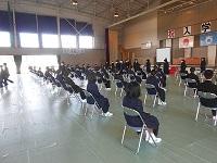※2年生は1時間目に体育館で本年度の経営方針や学力向上の取組、コロナ対策への心構え等の説明を受けました。