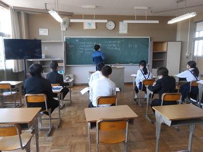 3年1組「数学」3年生で学ぶ内容で、課題の復習をしていました。今日から少人数指導で1クラスを2つに分けて、個に応じた指導を行っています。