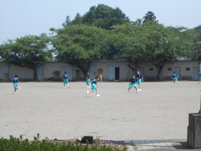 歯磨き後、今度は校庭に出て身体を動かしていました。暑さに負けない元気な生徒です。