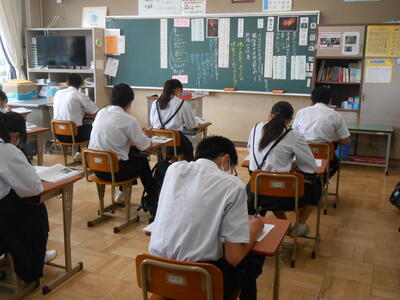 【テストの様子】1時間目の様子です。2年生は「英語」3年生は「理科」でした。