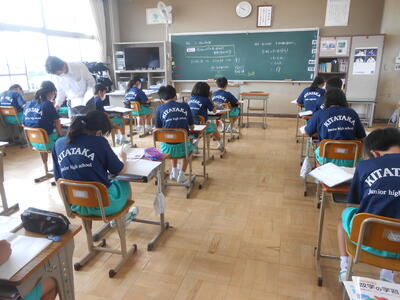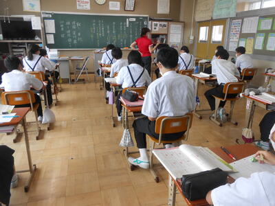 3年2組「英語」少人数により、きめ細かな指導が行われていました。英語が好きになる生徒が増えることを願っています。